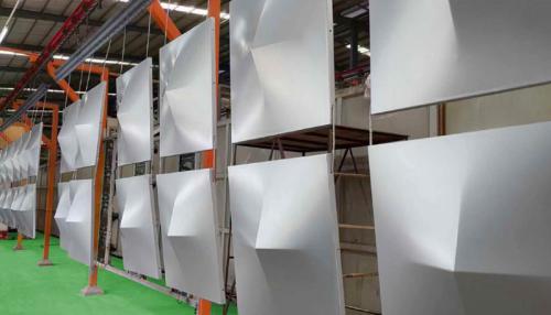 鋁單板項(xiàng)目上,公司先后從世界各地引進(jìn)電腦數(shù)控鈑金加工生產(chǎn)設(shè)備,在氟碳等高檔表面處理上,在室外可以質(zhì)保10年以上,室內(nèi)15年以上不變色,公司已形成年生產(chǎn)加工和銷售鋁單板150萬平方米,鋁蜂窩板120萬平方米的規(guī)模。